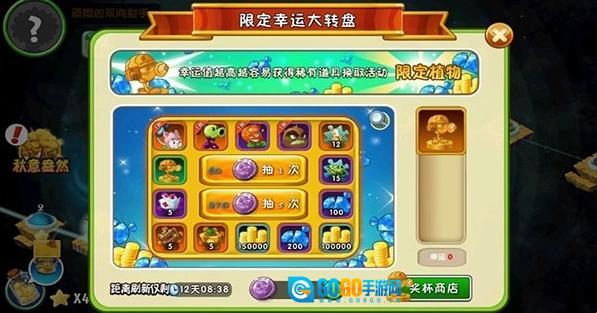 在限定幸运大转盘有几率抽中植物。