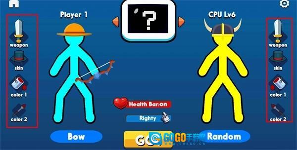 3、接下来要为出战的火柴人选择装备,包括发型、颜色等个性化设置。