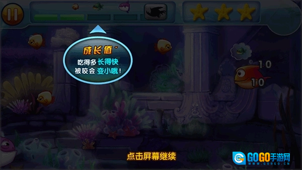4、成长值吃的多会加快,被咬就会变小。