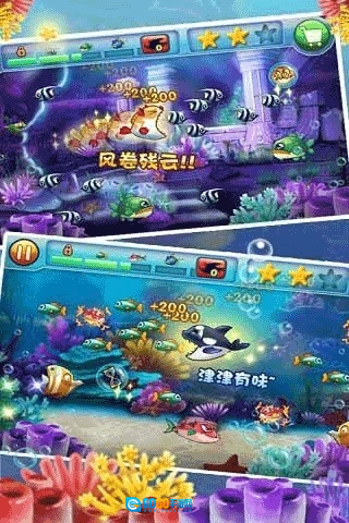 2.吞噬成长:不断吞噬比自己小的鱼类来积累经验值,逐步成长为更大的鱼。