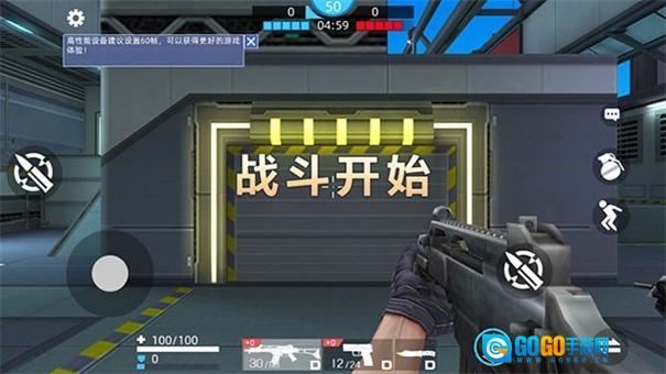 2、战斗开始后,左侧摇杆控制角色移动,右侧按钮负责射击与换弹等操作。