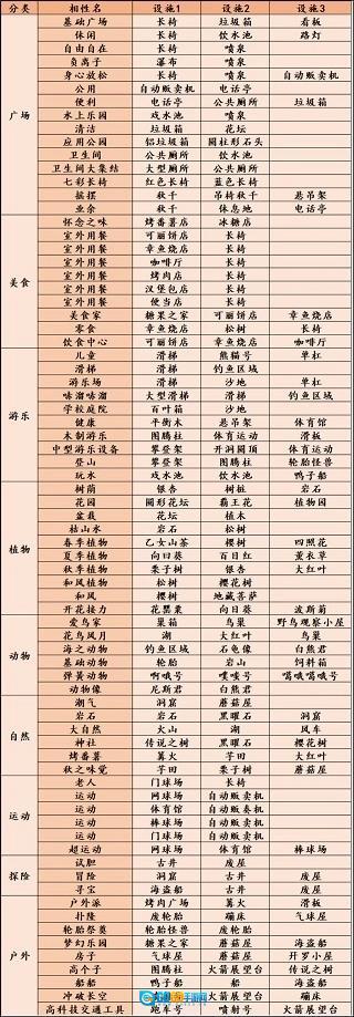 景点组合相性表: