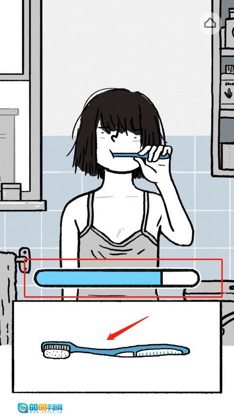 4、睡过头了,得赶紧刷牙,点击下方的牙刷左右摇晃,直到进度条填满为止。