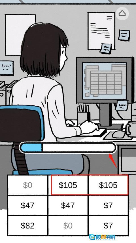 6、到公司了,开始认真工作啦,点击两种数量一样的$钞票,直到进度条填满,今天的工作就完成啦。