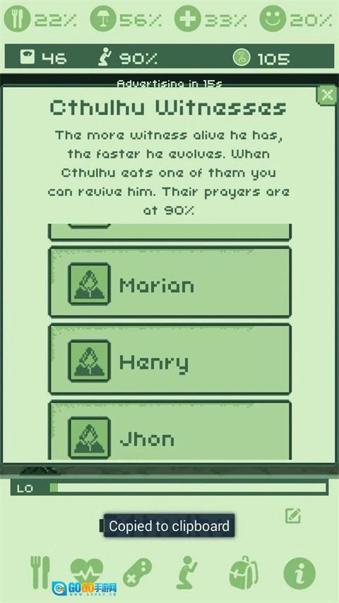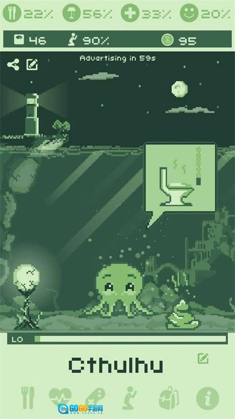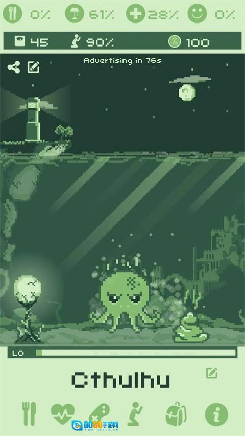 克苏鲁虚拟宠物养成,游戏中玩家拥有属于自己的看似章鱼的小宠物,玩家可以在游戏中与你的克苏鲁生物进行互动,玩法,喂食,互动多种玩法期待用户的体验,游戏画面采用独特的像素画风,随着你的养成你的克苏鲁生物将发生变化,时刻关注你的宠物健康状态。