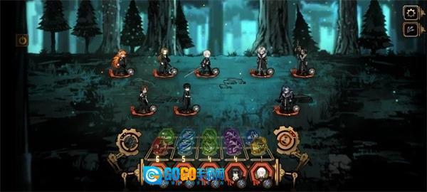 先来介绍一下游戏的基本界面,为了便于理解,我会用图书馆系统作为类比进行说明。下方这个界面可以看作是所有角色的行动槽和卡池,开局时只有5条技能栏,每条技能栏下方显示着对应角色的头像。随着战斗的进行,每位角色最多可拥有3条技能栏,这些竖条代表的是角色的速度属性。