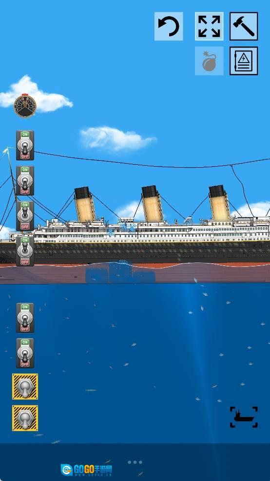 2、点击下方的船只选项即可进行切换,其中包含泰坦尼克号。此外,还能切换船体视角,便于从不同角度观察结构变化,再配合开关调整,效率会更高。