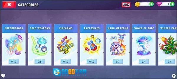 3、游戏内提供海量武器可供使用,涵盖枪械、机器人、天灾、炸弹等多种类型,每种武器都具备独特的攻击特效,带来极佳的视觉体验。