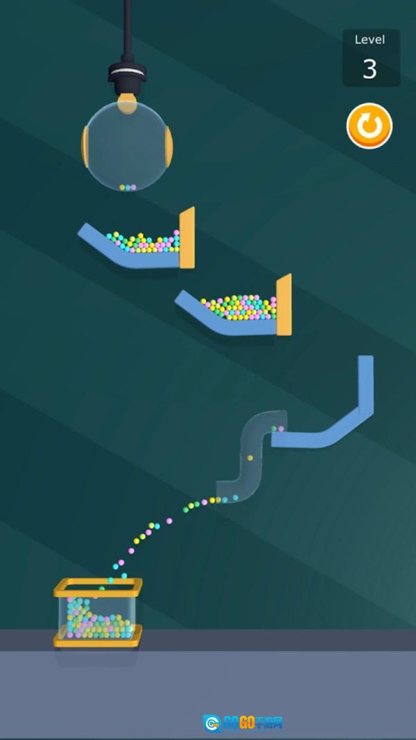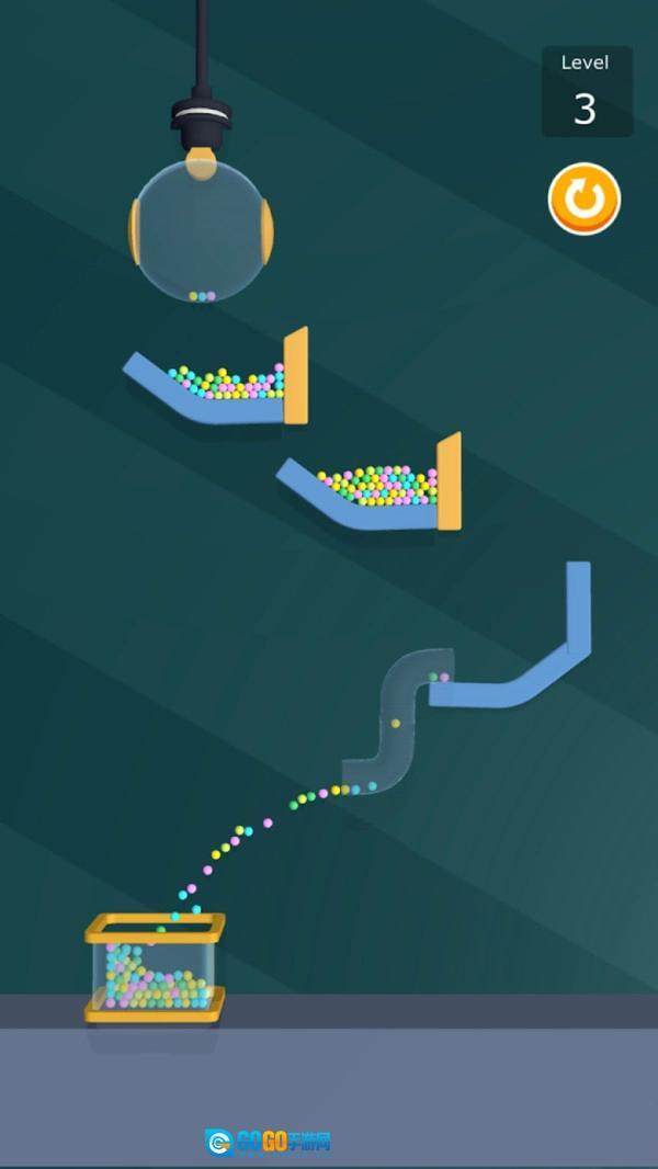 1、背景乐充满童真童趣,风格简洁明快,小球仅能进入与自身颜色相同的赛道。