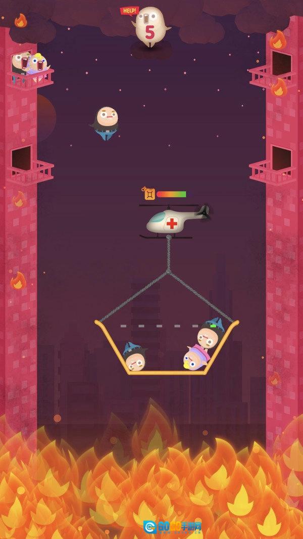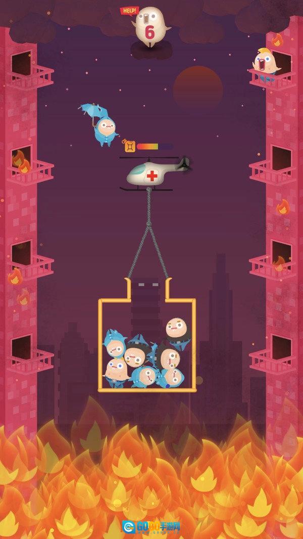 1、在游戏中轻松放条绳索,帮助更多的火柴人去逃离各种火场;