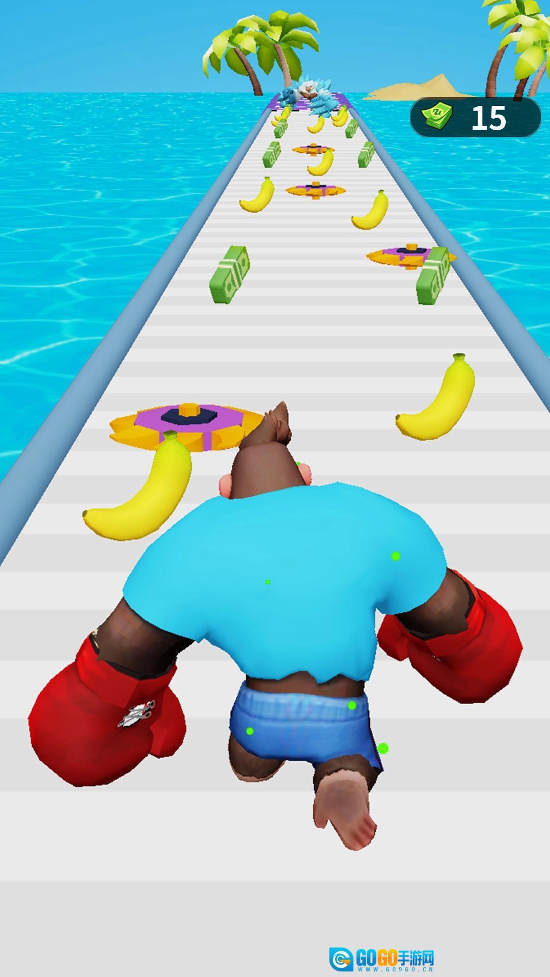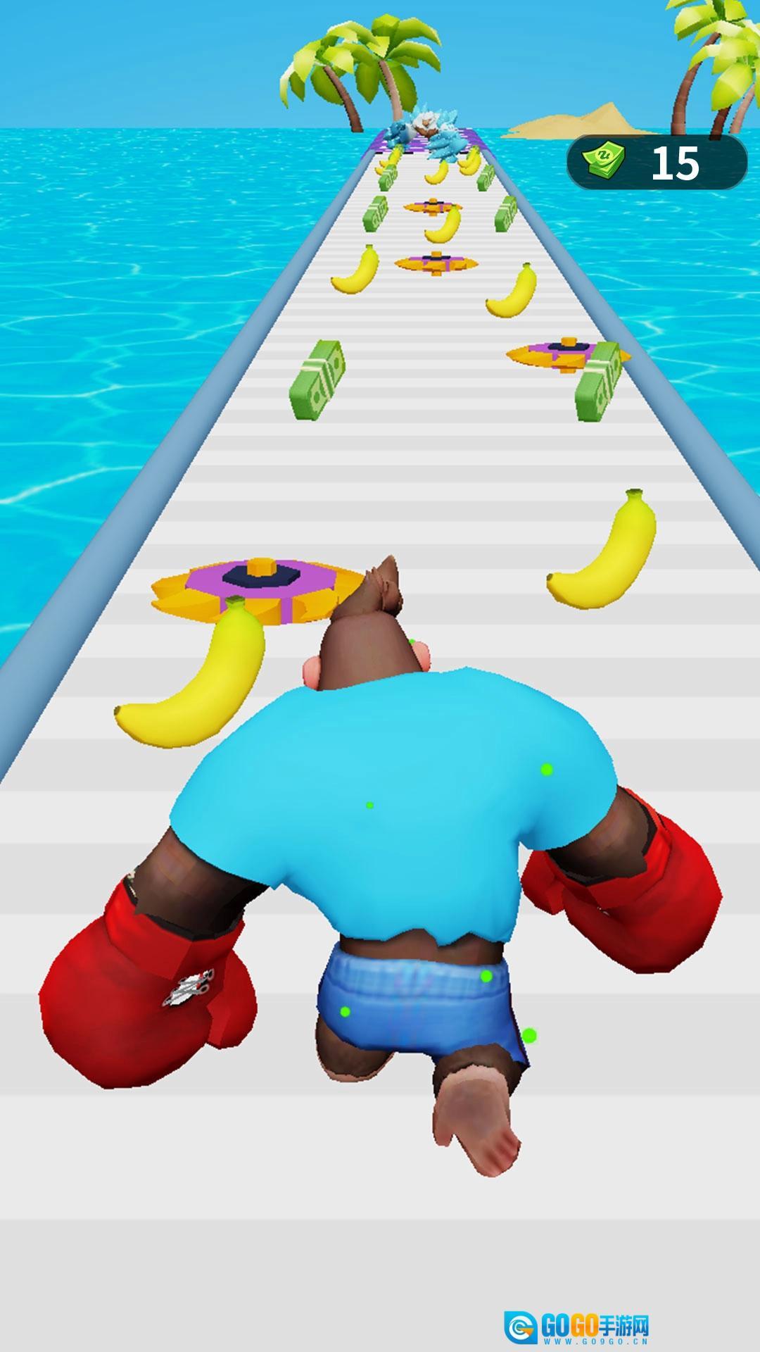 控制猿猴人快速的奔跑冒险,避开各种陷进,只有香蕉和金币能吃;