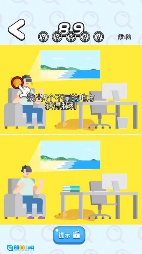 游戏会显示两幅看似相同的图像,但它们之间存在一些微小的差异。