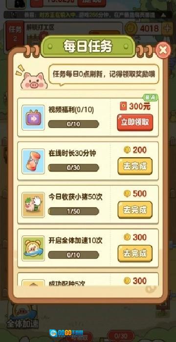 4、每日凌晨刷新高价红包任务,提前储备所需猪种;分享任务给好友可获得助力加速完成。
