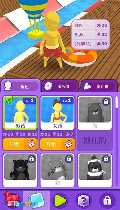 1、漂流乐园中可爱的卡通风格和绚丽的水上乐园场景,营造愉悦的游戏氛围;