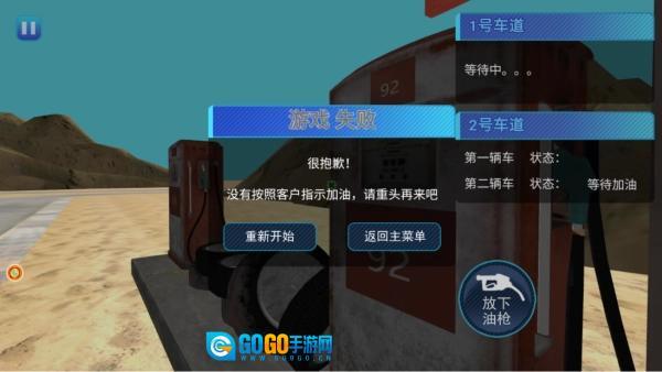 2.如下图,玩家可以根据右侧的状态栏,了解各个加油机器的状态,并根据提示来完成加油任务。