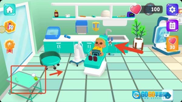 3、桌子上有对应的医疗设备,选择对的道具,给患者治疗。