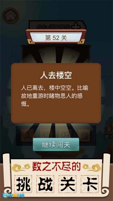 3.提供成语解释和出处,让玩家学习到成语的来源和含义,丰富知识同时提升文化素养。
