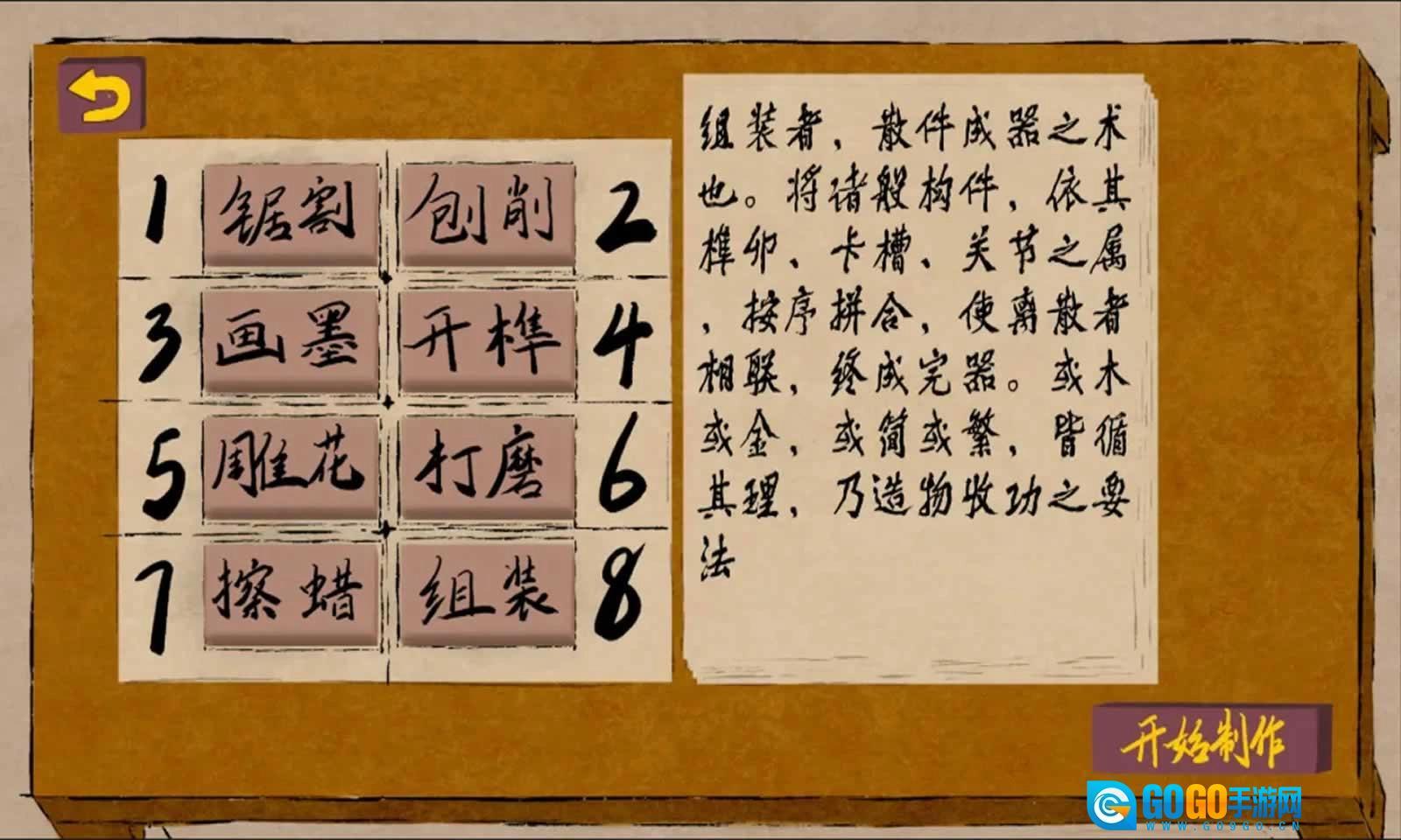 1、玩家通过爷爷的笔记引导,逐步完成三类非遗作品的制作挑战,解锁新的工艺与道具。