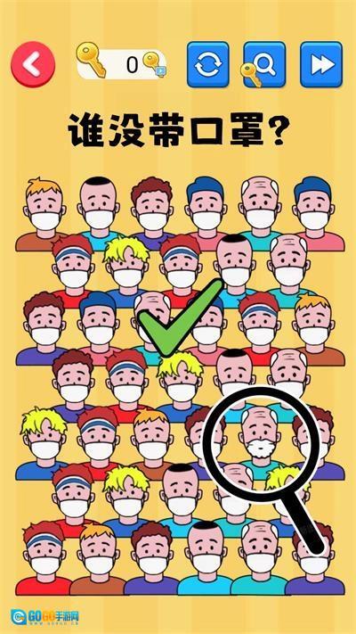 找出显眼老六是一款简单易懂且丰富多彩的游戏。玩家需要在人群中找到不戴口罩的人,并将其送到隔离点进行处理。游戏与当前社会热点话题有关,体现了责任和勇气,也可以启发人们的安全意识。玩家需要快速反应,注意避免意外伤害,并不断收集道具以提高自己的生命值和分数。游戏操作简单,点击即可,还有不定期的特殊事件需要处理。