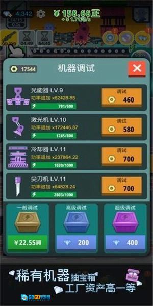 1.只需要将金币来提升机械设备,这样就能够生产出高级的道具;