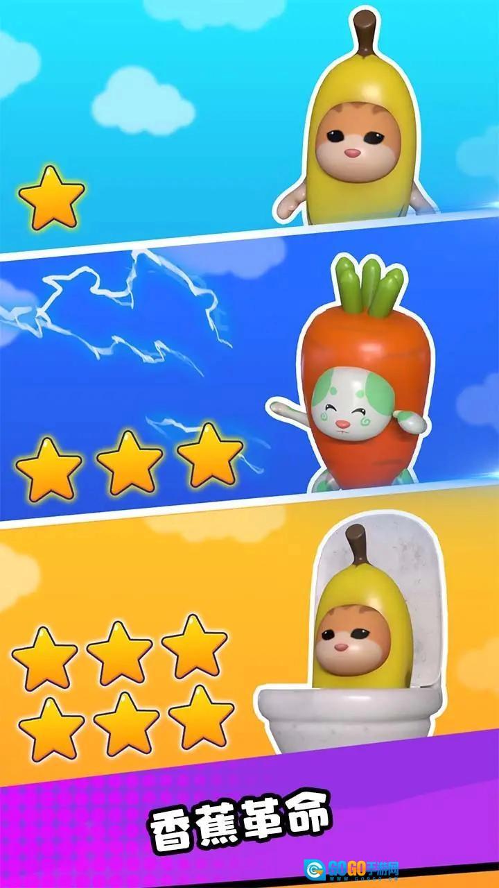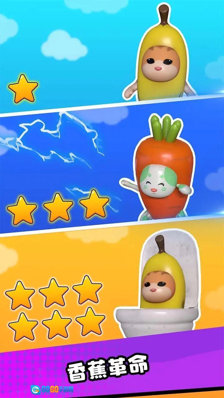 2.您的目标是快速奔跑,以收集这些奇特的可爱怪物,成为猫香蕉进化大师