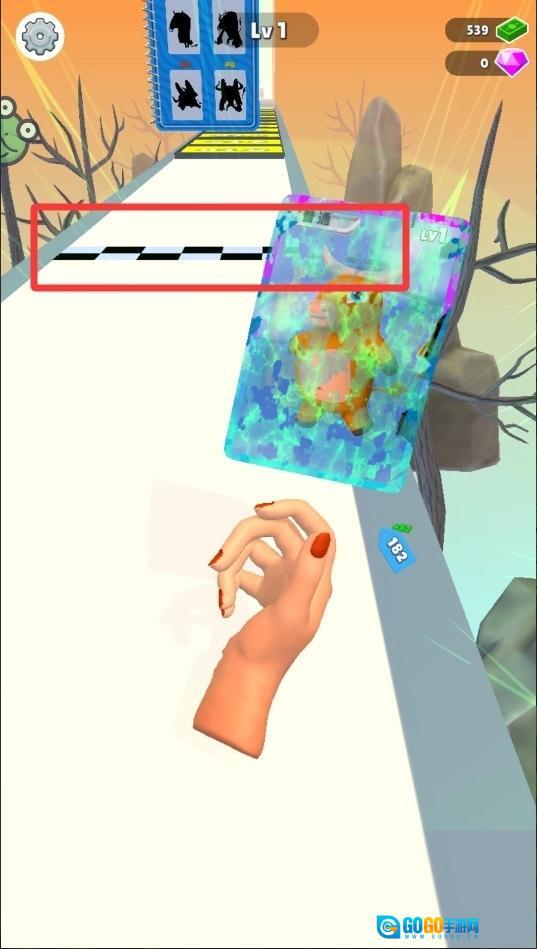 1、极速冲刺,在直线赛道上控制卡牌怪兽全力奔跑。灵活躲避障碍物,收集沿途钻石和卡牌碎片。