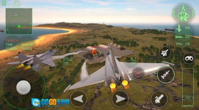 操作方式:玩家可选择重力感应控制和虚拟按键控制飞机飞行,还可选择瞄准后自动开火功能,方便玩家在复杂的空战中进行操作。此外,玩家在任务中还可以切换操作其余被派遣的飞机。