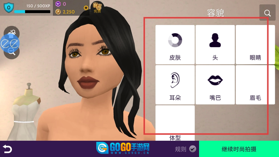 自定义容貌,调整皮肤、头、眼睛等部位,塑造个性形象,继续时尚拍摄,提升时尚度。
