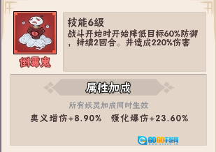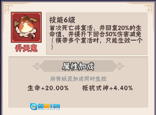 升天鬼的技能相当强力,不仅能复活,还会恢复13%的生命值;安乐灯灵在前4回合具备免疫封印的效果,若遭受伤害,最高也不会超过10%;腾云鬼则可以为角色提升18%的暴击率。