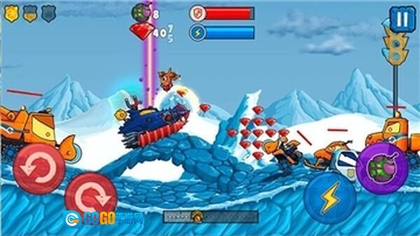 疯狂大越野是一款采用横版模式的赛车竞速类游戏,能让你看到更广阔的游戏画面,你可以在各个场景中完成不同的驾驶任务。游戏里的赛道丰富多样,地形也各不相同,你唯一要做的就是躲避敌人的追击,成功救出伙伴。