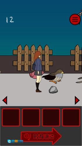终于来到最后一关了。这关其实挺简单的:妹子先走几步,用大石头堵住身后痴汉的去路;接着鸟会被惊动往前飞,等它飞过去后,在鸟前方放个小石子让妹子绊倒,这样鸟会第二次被吓到;同时用猪头挡住追上来的痴汉,就能顺利通关啦。