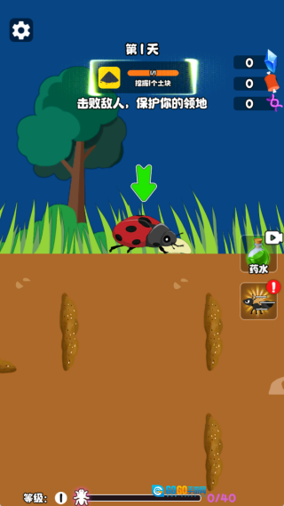 3、游戏中设有大量冒险任务等待玩家完成,玩家需要应对各类昆虫的挑战,操控蚂蚁投身精彩战斗,全力守护自己的巢穴。
