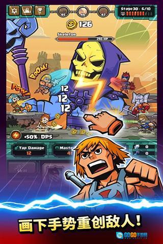 宇宙巨人希曼是由Animoca Brands推出的点击放置类游戏,改编自经典动画《He-Man and the Masters of the Universe》,以永恒王国为背景,玩家将化身希曼对抗骷髅王,守护这个世界。