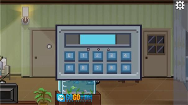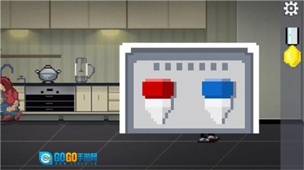 进入右侧的房间。接着打开冰箱的下层门,能获取一个黄色柠檬(这柠檬画得还挺逼真,不错)。此时点击饮水机,一阵烟雾弥漫(pm2.5妥妥超标了)过后,饮水机桶就装到饮水机上了。根据上图的提示,R代表红色red,B代表蓝色blue,按红蓝蓝红蓝红蓝的顺序来操作。