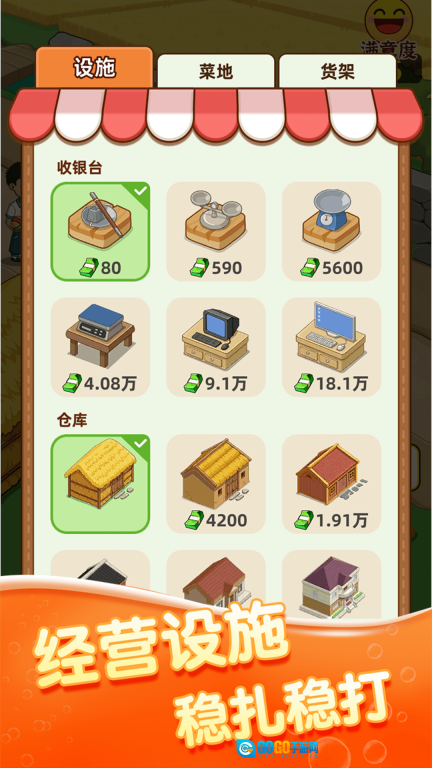 卖菜赚来的金币能用来买更多蔬菜种子,把摊位和田地都扩大。