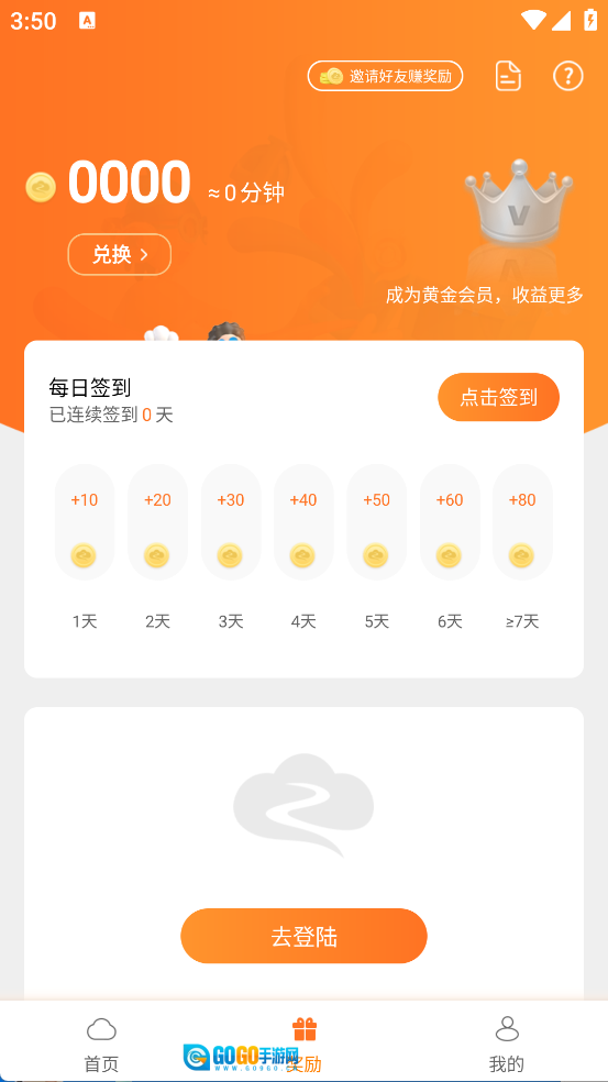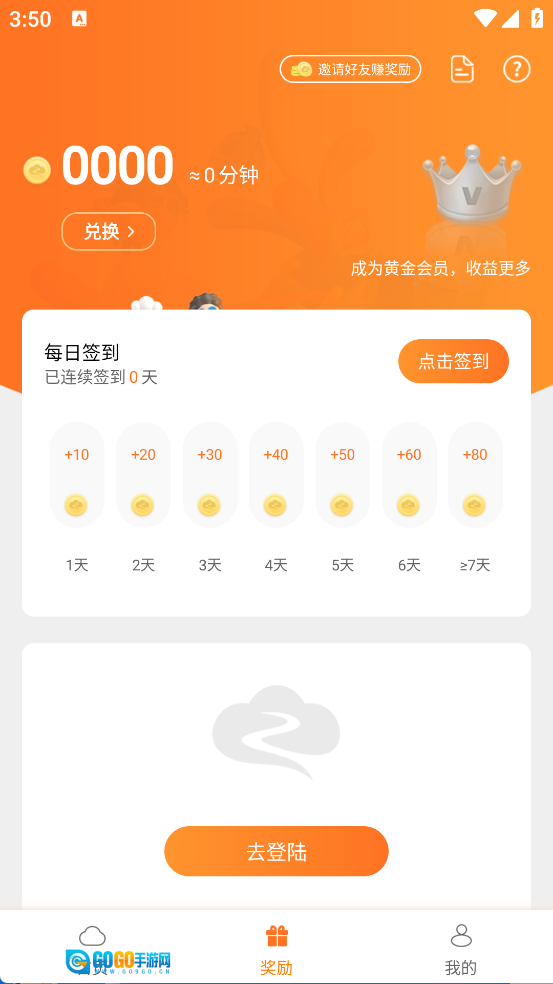 2、在奖励页面进行快速签到,签到天数越多,获得的金币就越多,这些金币可以用来兑换游戏体验时间。