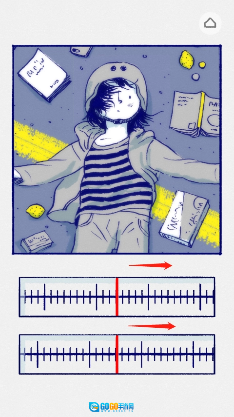 故事的开端,小女孩注意到身后有车辆驶来,此时画面显得模糊不清。请大家将上方的刻度向右滑动,直到视觉上达到最清晰的状态——通常这个位置对应刻度中最长的那根线,或是中间的刻度线。接着把下方的刻度尺向左滑动,等整个画面变得高清后,就能进入下一个场景了。
