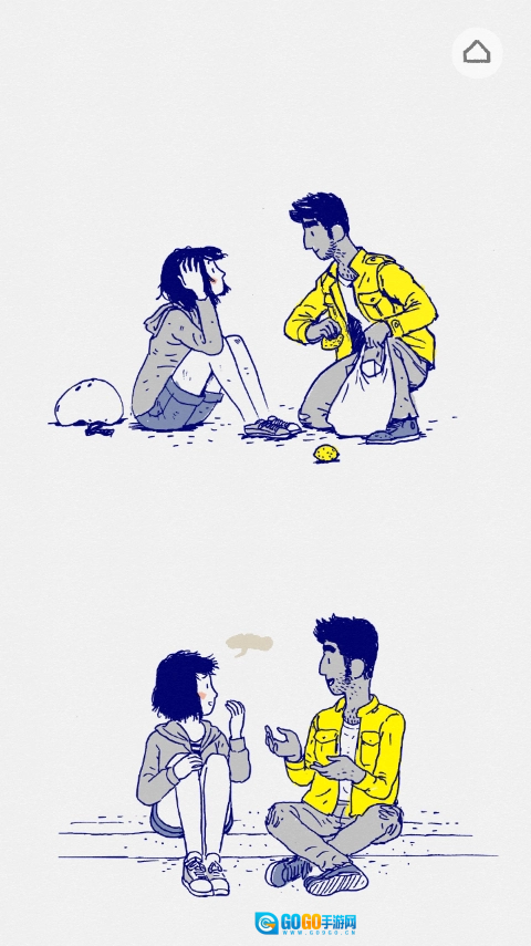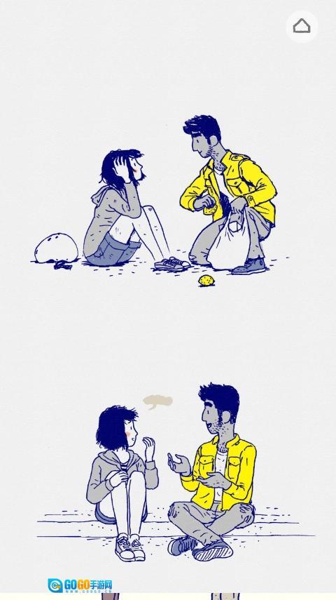 从相遇走向相知的过程里,游戏没有用任何文字来呈现,唯有那些散落成碎片的对话框,默默承载着两人之间的交流。