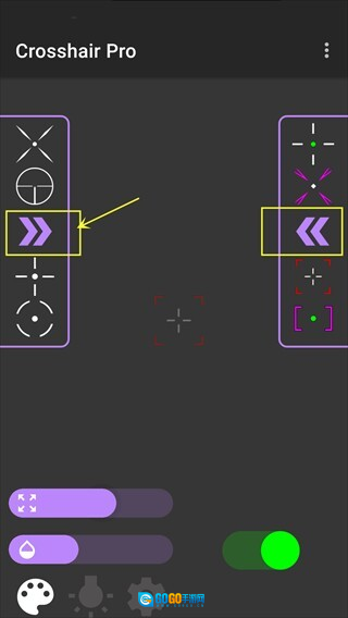 3、当然软件内的准星类型远不止展示的这些,还可以点击下图所示的箭头按钮查看更多准星类型。