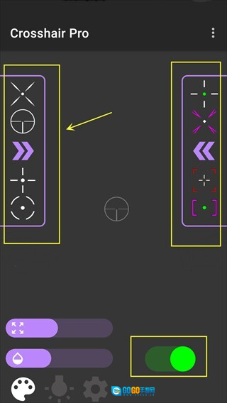 2、待开启后,软件左侧和右侧展示了一些热门的准星类型,你可以在这里进行挑选。