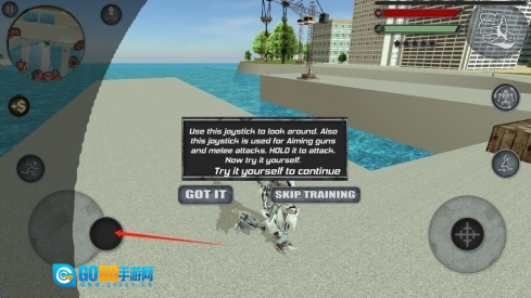 2、在游戏内的教学场景中,你需要跟随系统提示,通过操作虚拟摇杆来熟悉角色的操控方式,为接下来的战斗做好准备。具体操作是拨动轮盘来控制角色移动。