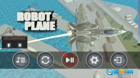1、进入Robot-Plane的启动界面后,找到并点击红色的播放按钮,以此开启机器人飞机的冒险之旅并进入游戏世界,随后点击“开始游戏”选项。