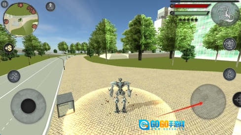 3、在机器人战斗场景中,借助虚拟摇杆灵活操控机器人移动、瞄准敌人并展开战斗,通过点击操作射击敌人,从而完成关卡任务。