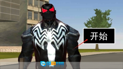 1、点击开始按钮,操控毒液角色,开启城市冒险之旅,体验超英战斗乐趣,点击开始游戏。