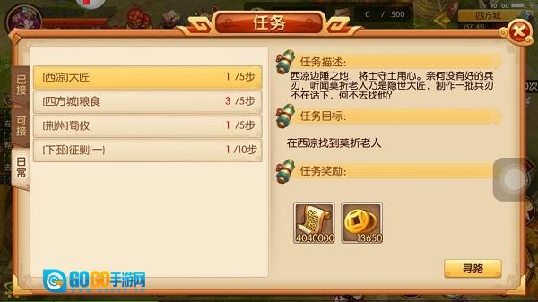 毫无疑问,主线任务是最省时省力且获取经验最多的任务,所以玩家一开始务必优先完成主线任务!需要提醒的是,主线中会存在一些进入副本的任务,而每天能够进入副本的次数是有限的。因此,千万别稀里糊涂地先去下副本,不然第一天就可能被主线任务难住,这会导致你和其他玩家的等级差距越拉越大!此外,主线任务都取材于三国史实,玩家在升级的同时,还能在剧情中领略真实三国的史诗级情节。