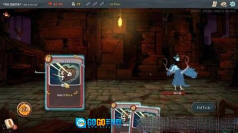 5. 同理,你能够把“防御”卡拖到自身,以此增加5点格挡值,这样敌人下回合对你发动攻击时,造成的伤害就会减少5点。但要谨记,若没有其他道具或卡牌协助,格挡点数会在本回合结束后清零。