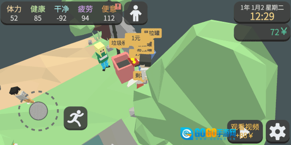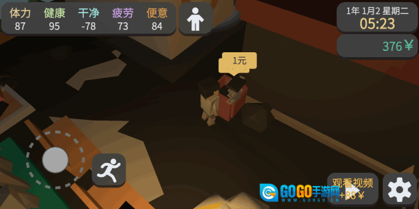 乞讨的条件为干净度小于0或者健康值在60以下。此外,也能够通过观看广告直接实现相关条件的达成。