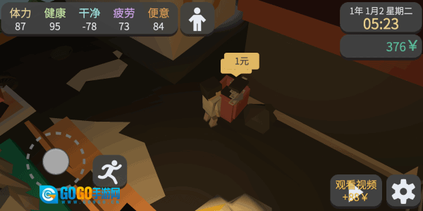 出生地能洗澡、上厕所,不过玩泥巴和乞讨相关的 bug 还没修复。当你离开那个地方时,得记住回去时的样子,不然就会迷路。接着去距离最近的超市兼职,兼职结束后前往那个公园。公园里有三个长椅,先别着急,那儿有个垃圾桶,翻垃圾很可能找到薯片。之后,你就休息一下,积攒到100,方便去释放一下。然后回去,进行洗澡,接着重复这些步骤。要是体力不够,就把超市工作拉满,之后再去歇一歇,接着工作。记住,店员工作满300,再工作满1500就去餐厅,如此反复。