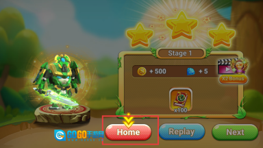 4、完成【Stage1】关卡通关后,点击【Home】按钮,即可返回主界面。