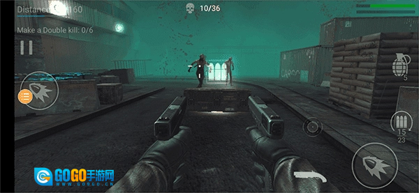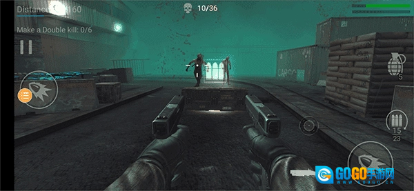 4、接着操控角色用武器消灭袭来的僵尸,要是手枪子弹耗尽,就移动角色到途中出现的补给点,这样就能为手枪补充弹药了。